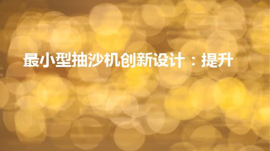 最小型抽沙機創新設計:提升效率的抽沙設備如何改變產業格局?